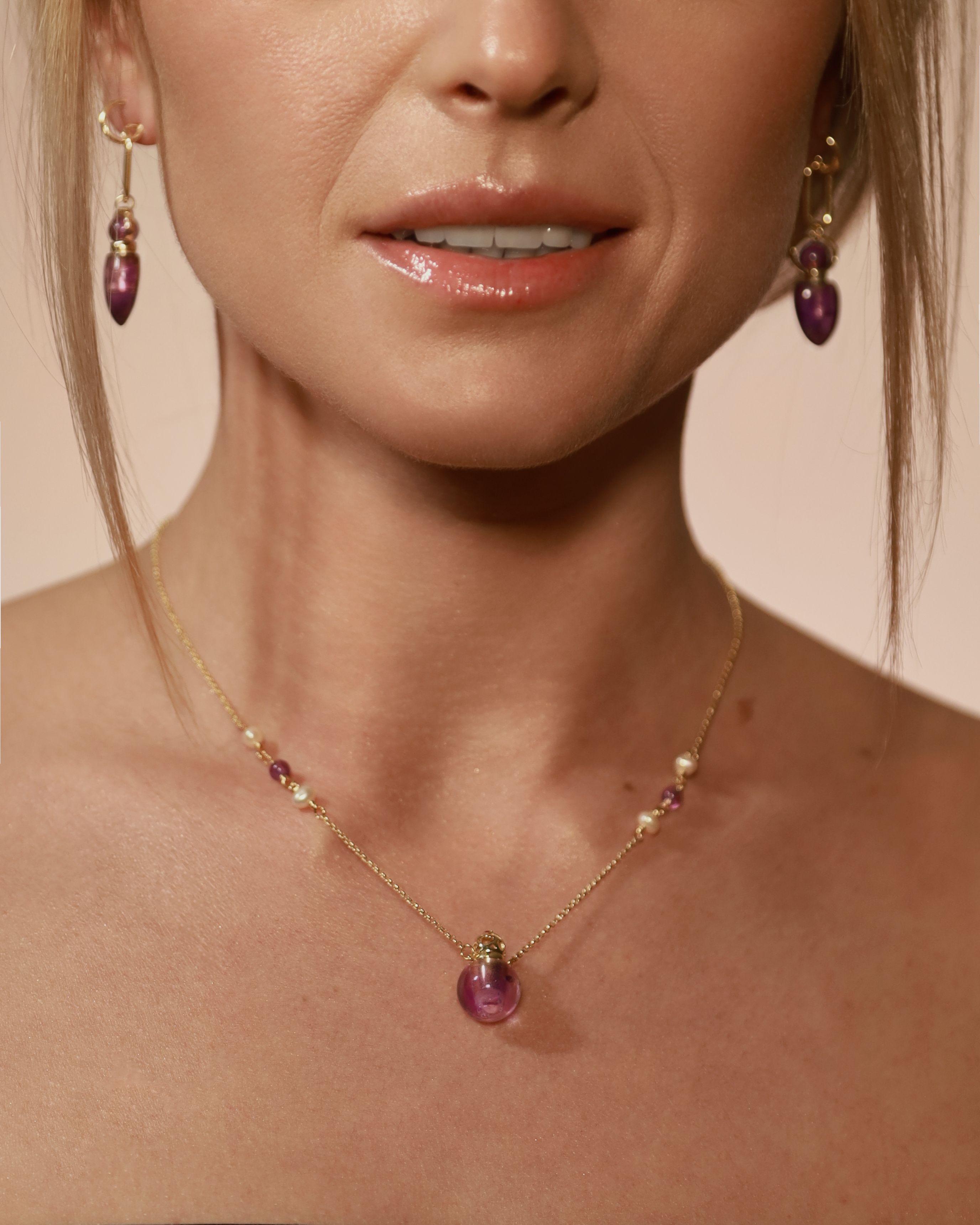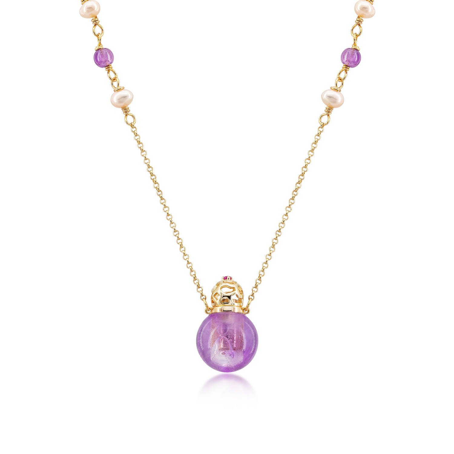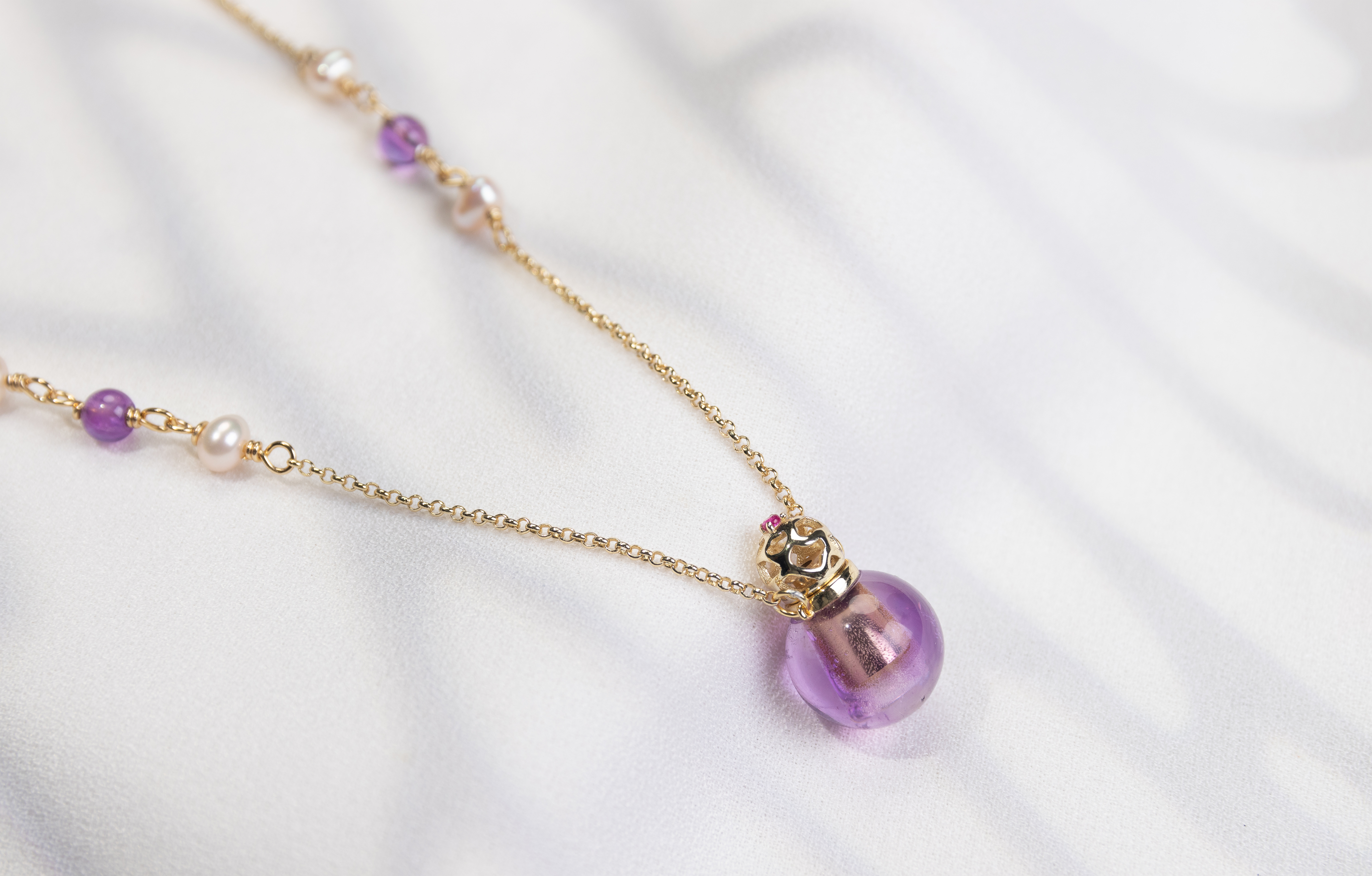 (English) Amethyst Sphere Bottle Necklace